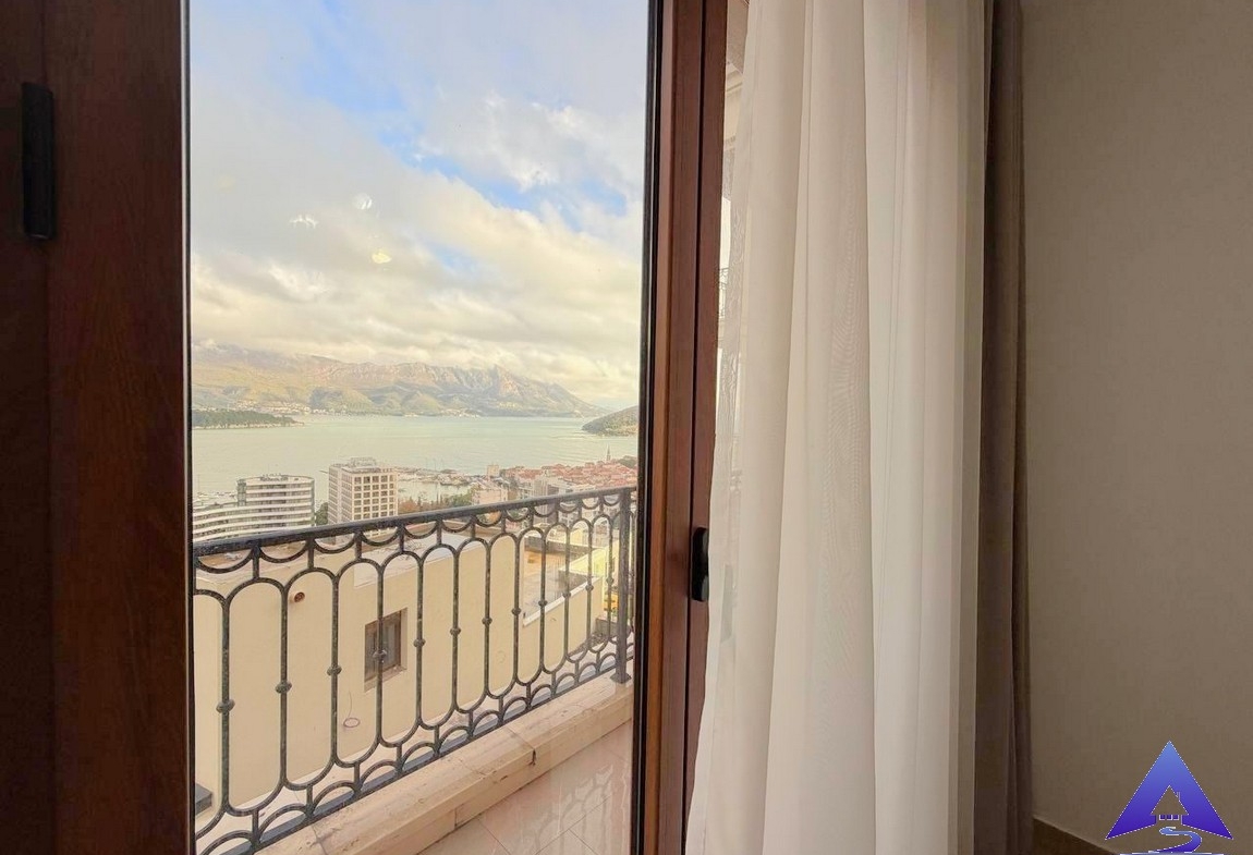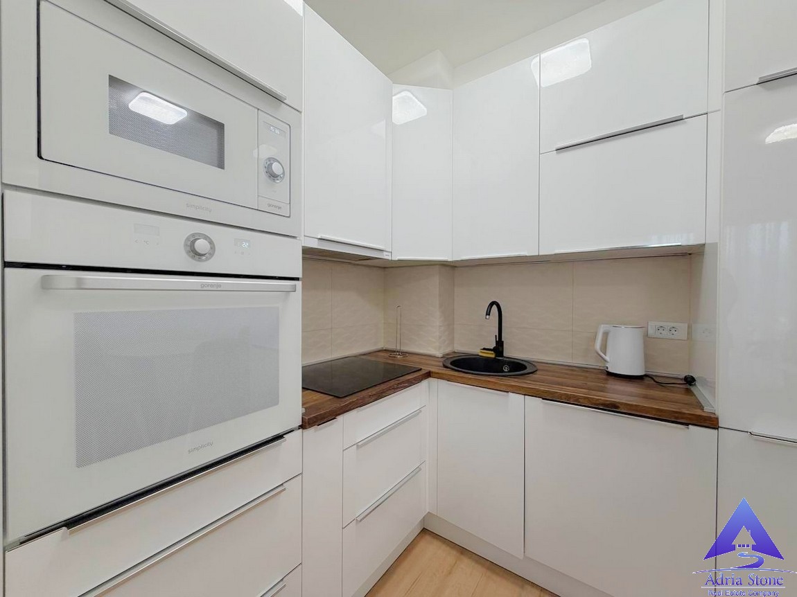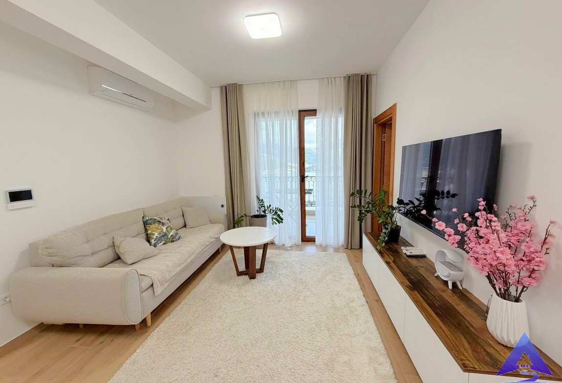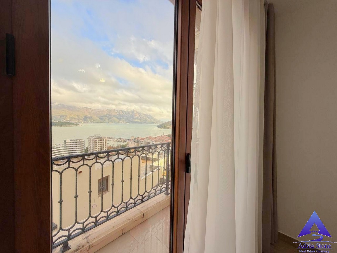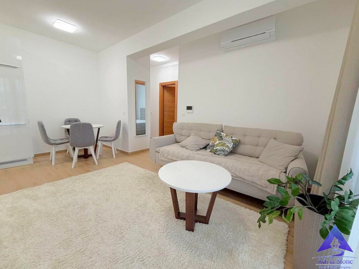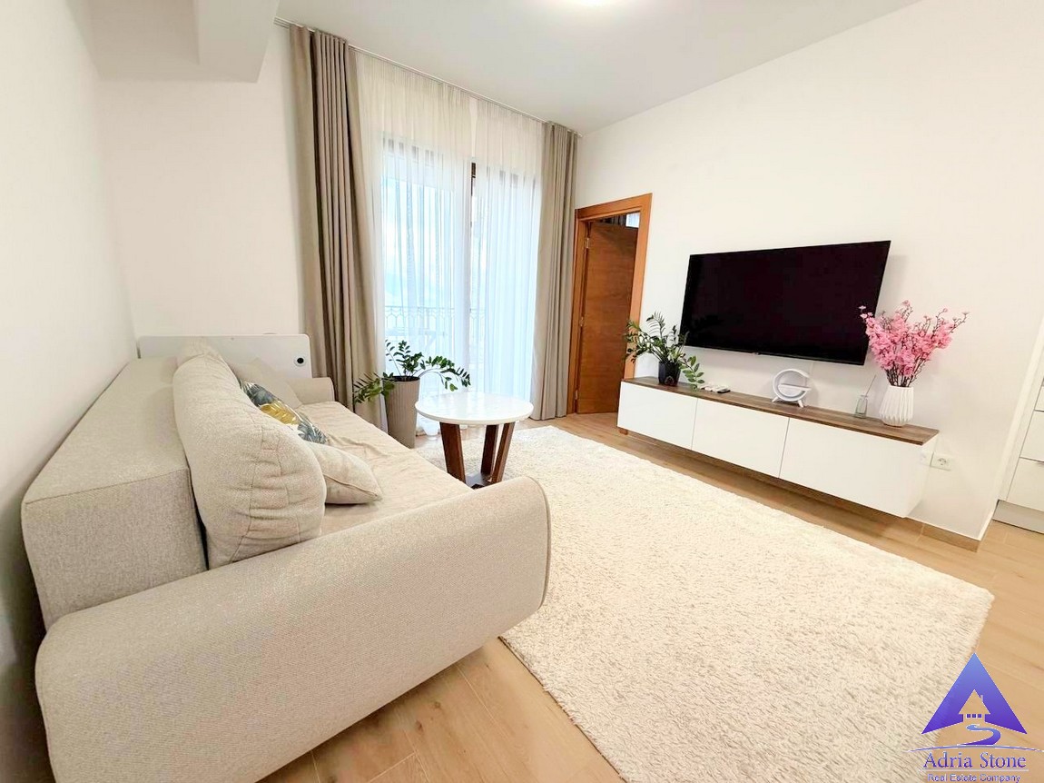 Smješten na prvom spratu novije stambene zgrade, stan ima površinu od 54m² i racionalno je organizovan kako bi se maksimalno iskoristio svaki kvadratni metar. Struktura obuhvata dvije spavaće sobe, dva kupatila, kao i dnevni boravak povezan sa kuhinjom i trpezarijom. Veliki prozori obezbjeđuju dosta prirodne svjetlosti i pružaju prelijep pogled na more, kao i na grad Budvu.