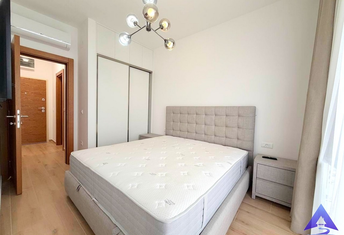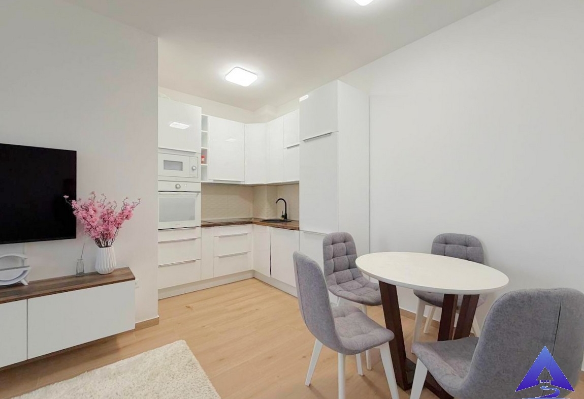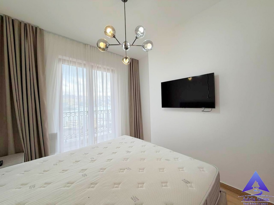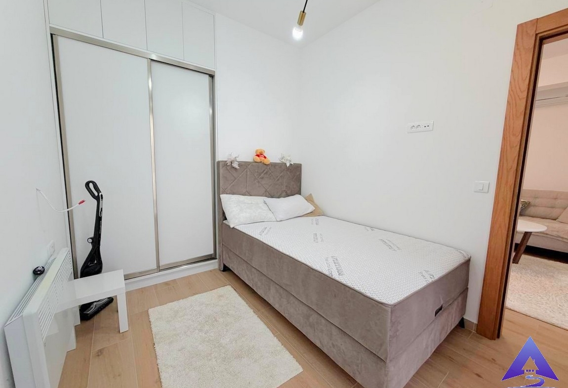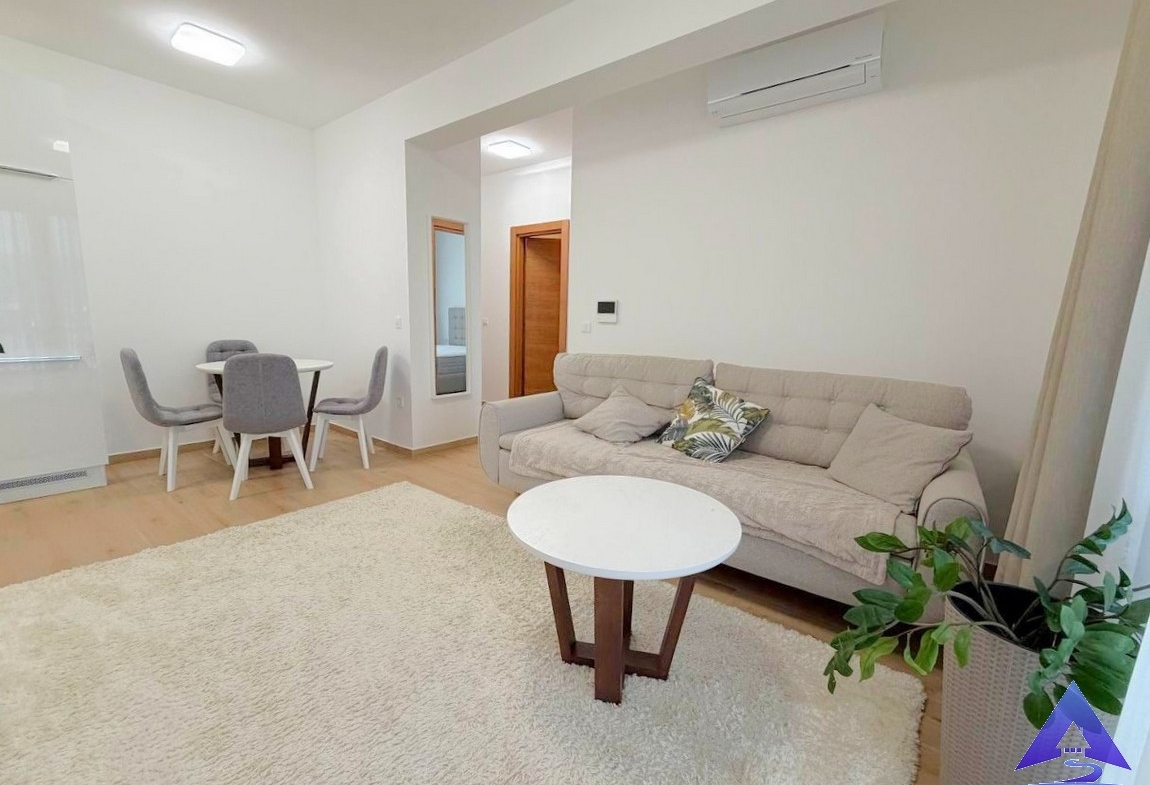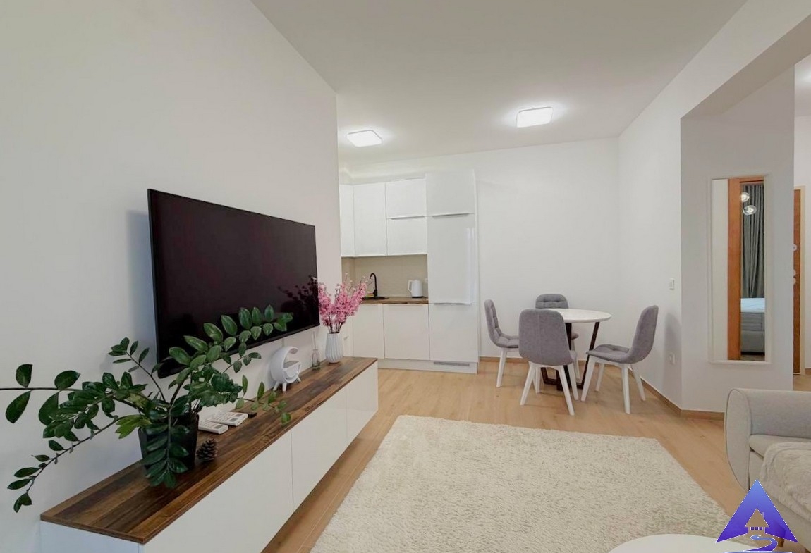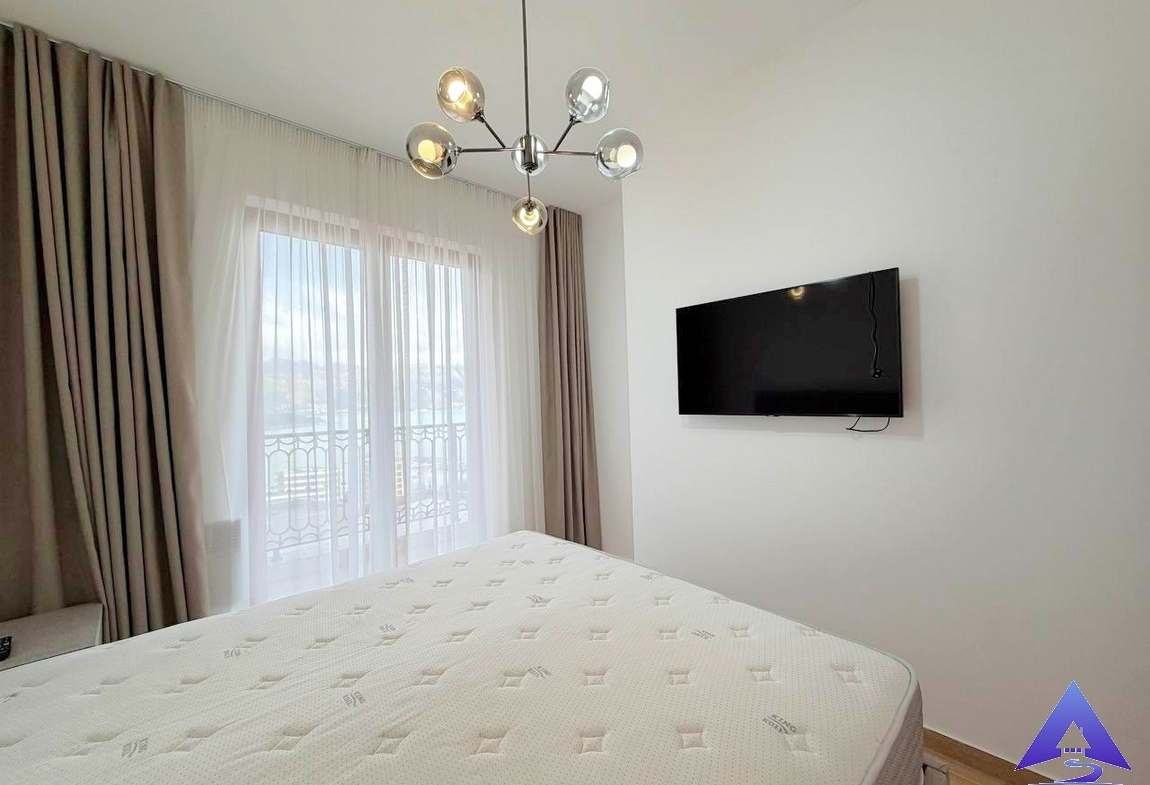 Smješten na prvom spratu novije stambene zgrade, stan ima površinu od 54m² i racionalno je organizovan kako bi se maksimalno iskoristio svaki kvadratni metar. Struktura obuhvata dvije spavaće sobe, dva kupatila, kao i dnevni boravak povezan sa kuhinjom i trpezarijom. Veliki prozori obezbjeđuju dosta prirodne svjetlosti i pružaju prelijep pogled na more, kao i na grad Budvu.