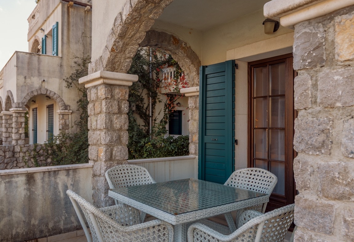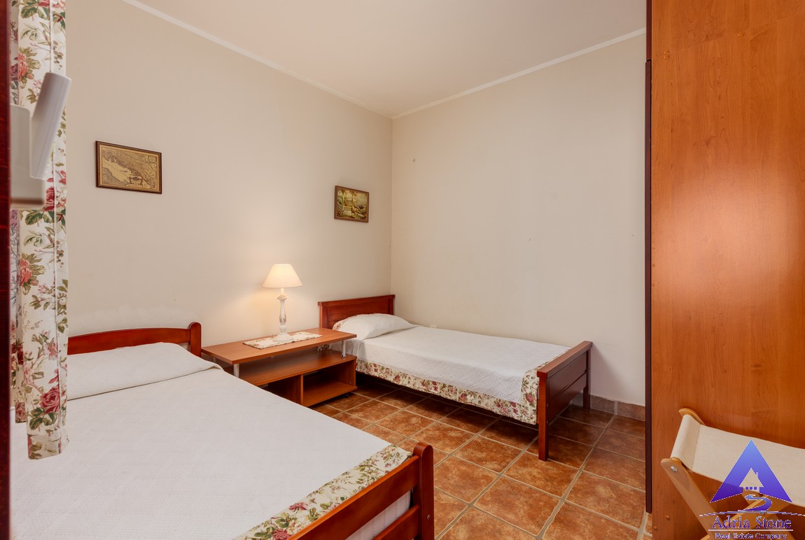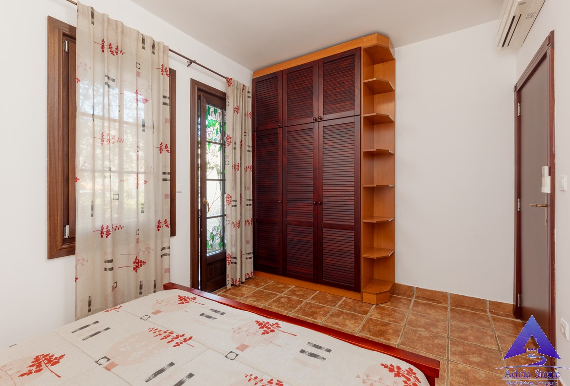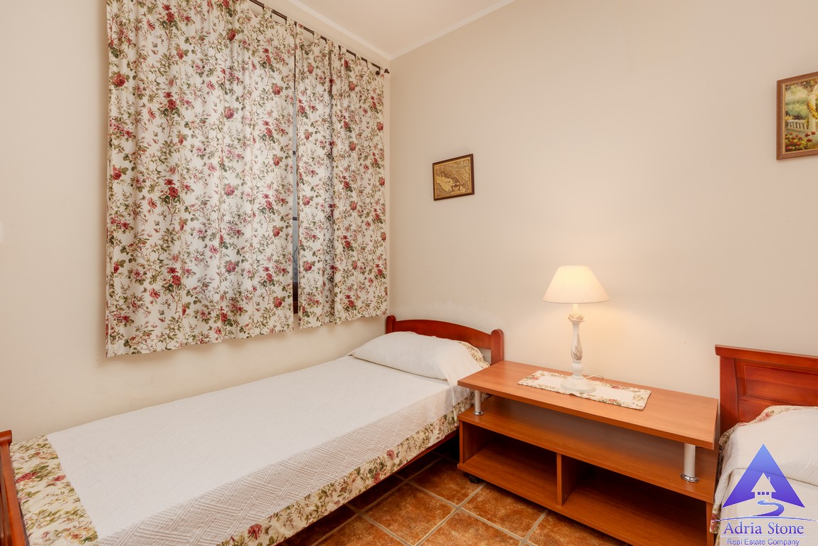 Na prodaju potpuno namješten dvosoban stan u ekskluzivnom stambenom kompleksu u Kostanjici, smješten na drugoj liniji od mora. Stan se nalazi na prvom spratu i ima 84m² unutrašnjeg prostora, kao i terasu od 16m² sa prelijepim otvorenim pogledom na more.