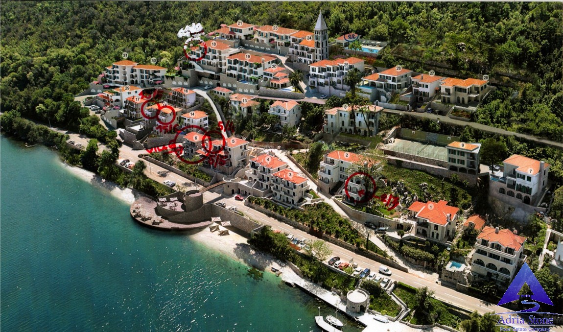 Kompleks nudi bogat sadržaj, uključujući bazen, privatnu plažu, restoran, teniske i košarkaške terene, recepciju, uređene zelene površine i organizovano održavanje cijelog naselja. Radi se o sigurnom i kvalitetno uređenom okruženju koje pruža visok nivo komfora i privatnosti.