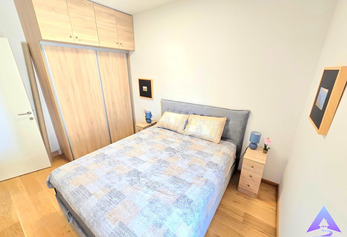 Stan se prodaje polunamješten – svi uređaji ostaju, dok kauč i krevet nijesu uključeni u prodaju. Privatno garažno mjesto obezbjeđuje dodatnu sigurnost i komfor, što predstavlja rijetku pogodnost u ovoj atraktivnoj lokaciji.