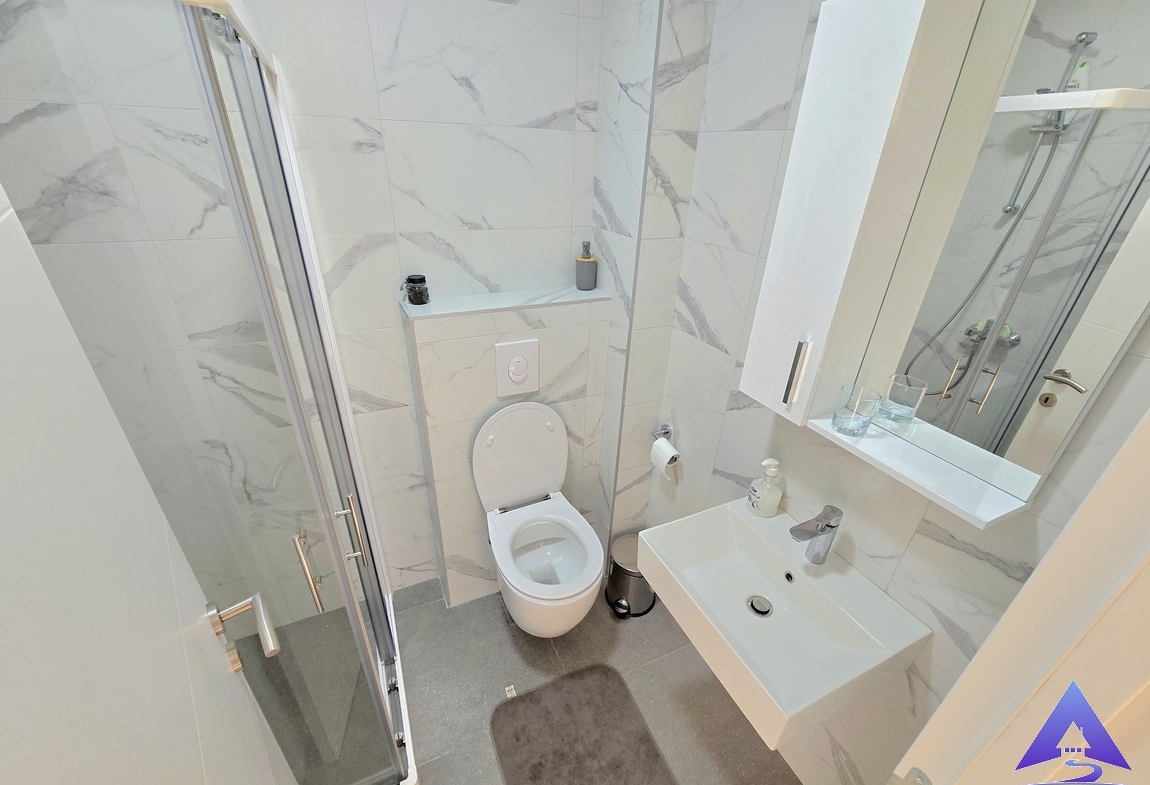 Stan se sastoji od udobne spavaće sobe, modernog kupatila i dobro opremljenog dnevnog boravka. Veliki prozori pružaju obilje prirodne svjetlosti, stvarajući toplu i prijatnu atmosferu.