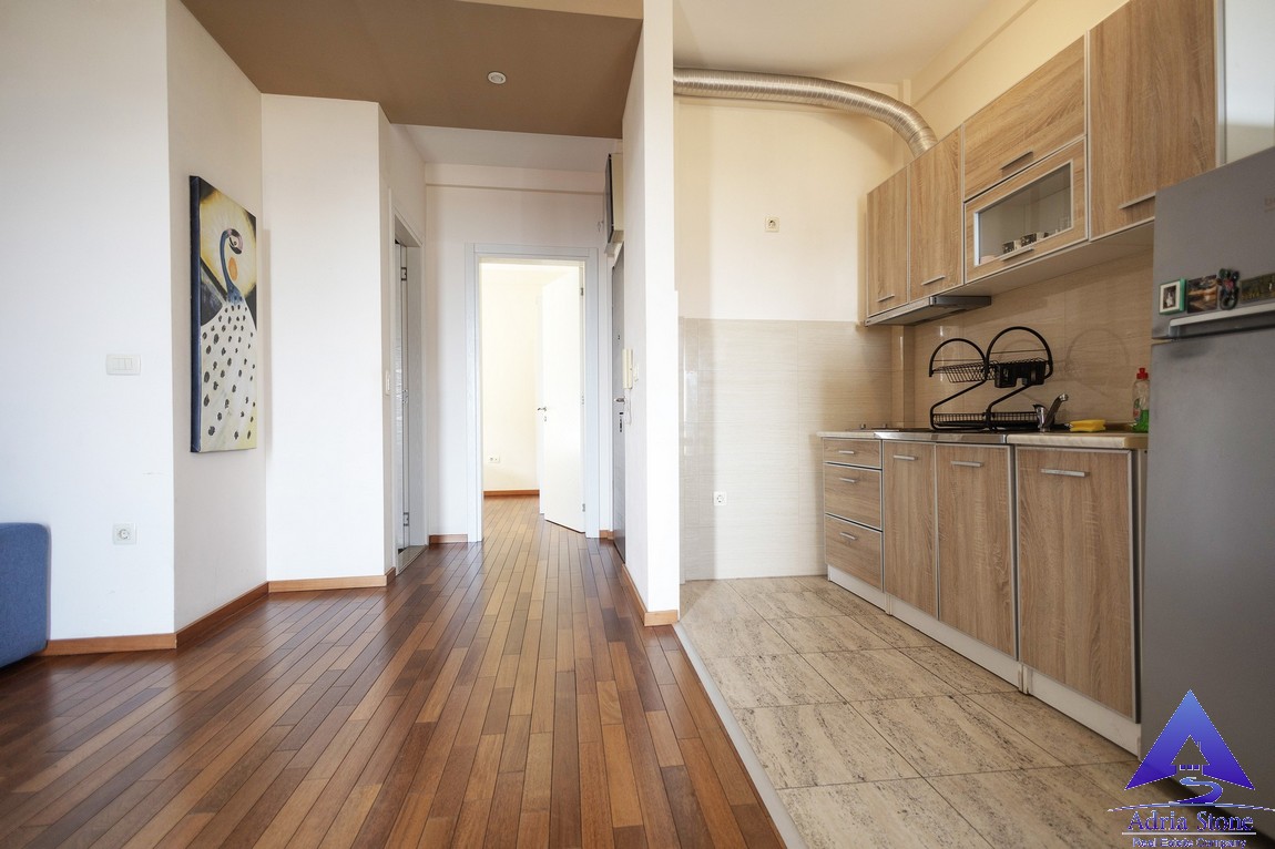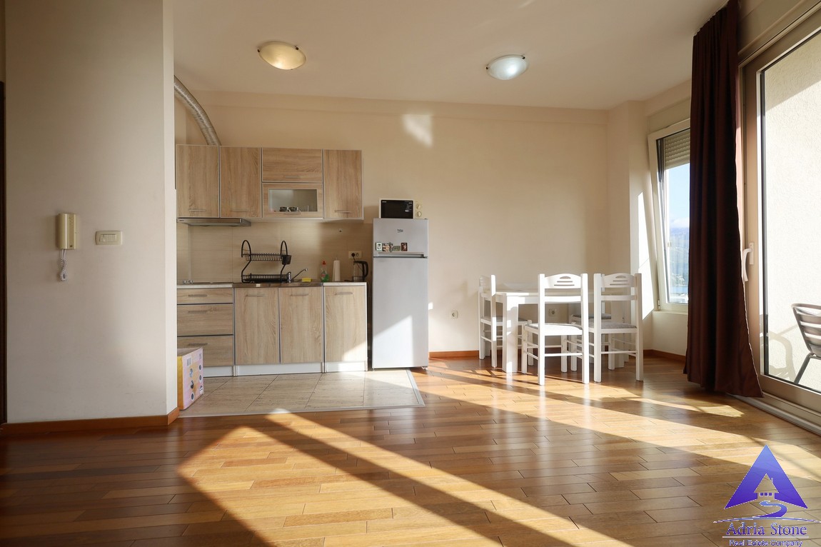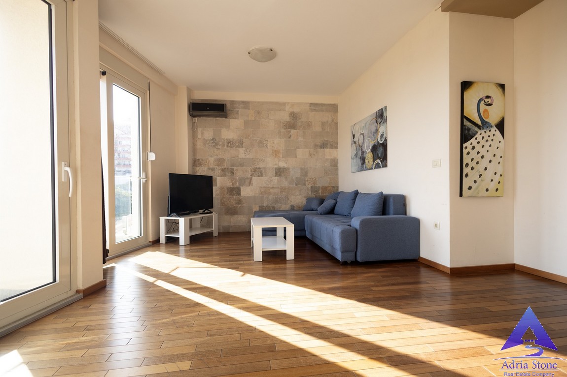 Stan ima površinu od 55m² i funkcionalan raspored koji obuhvata jednu spavaću sobu, jedno kupatilo i svijetao dnevni boravak sa puno prirodne svjetlosti. Dnevni boravak ima izlaz na terasu sa prelijepim pogledom na grad, more i ostrvo Sveti Nikola.