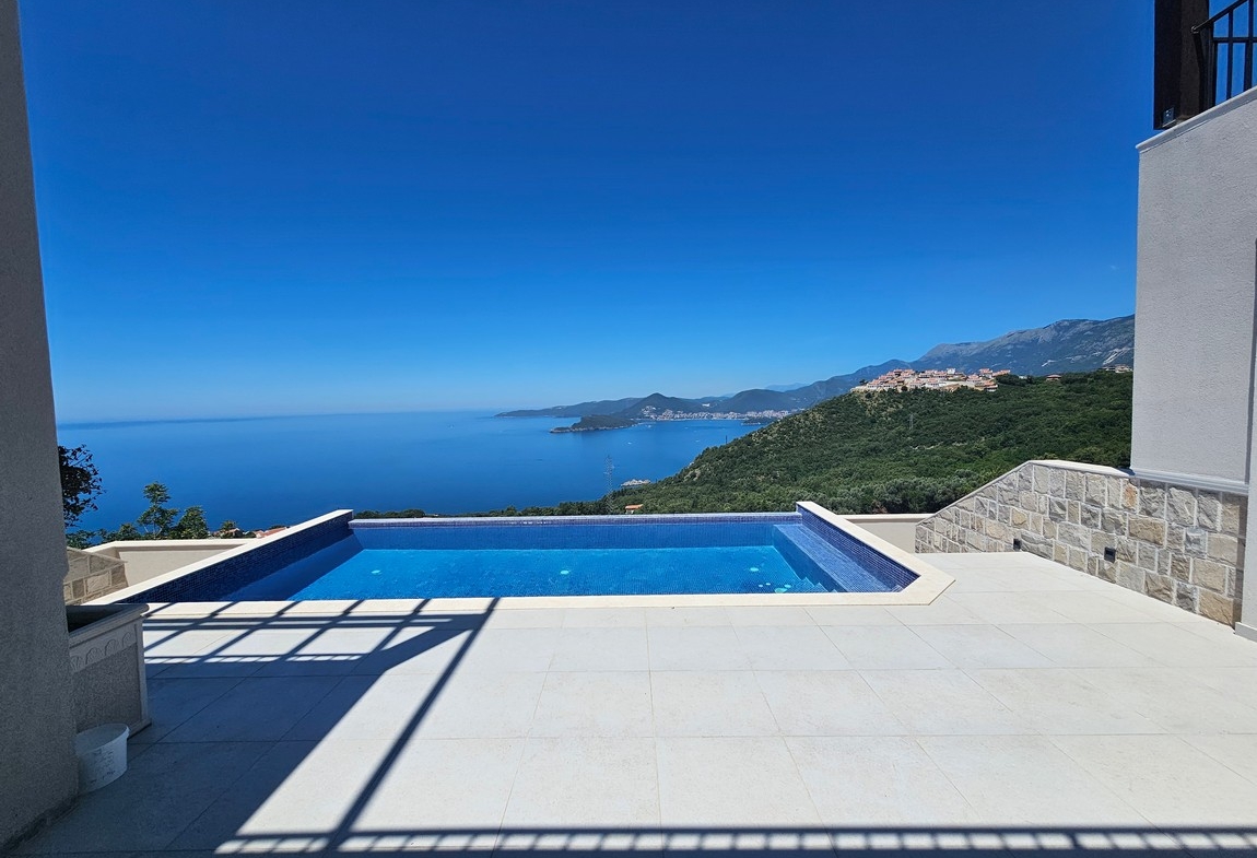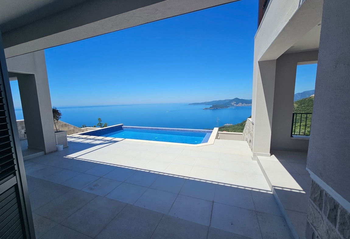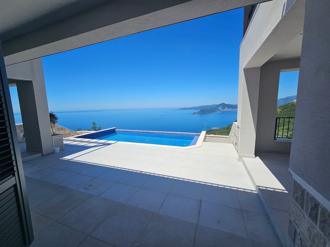 Vila sa bazenom i zivopisnim pogledom na prodaju u luksuznom naselju Blizikuce, Budva.
