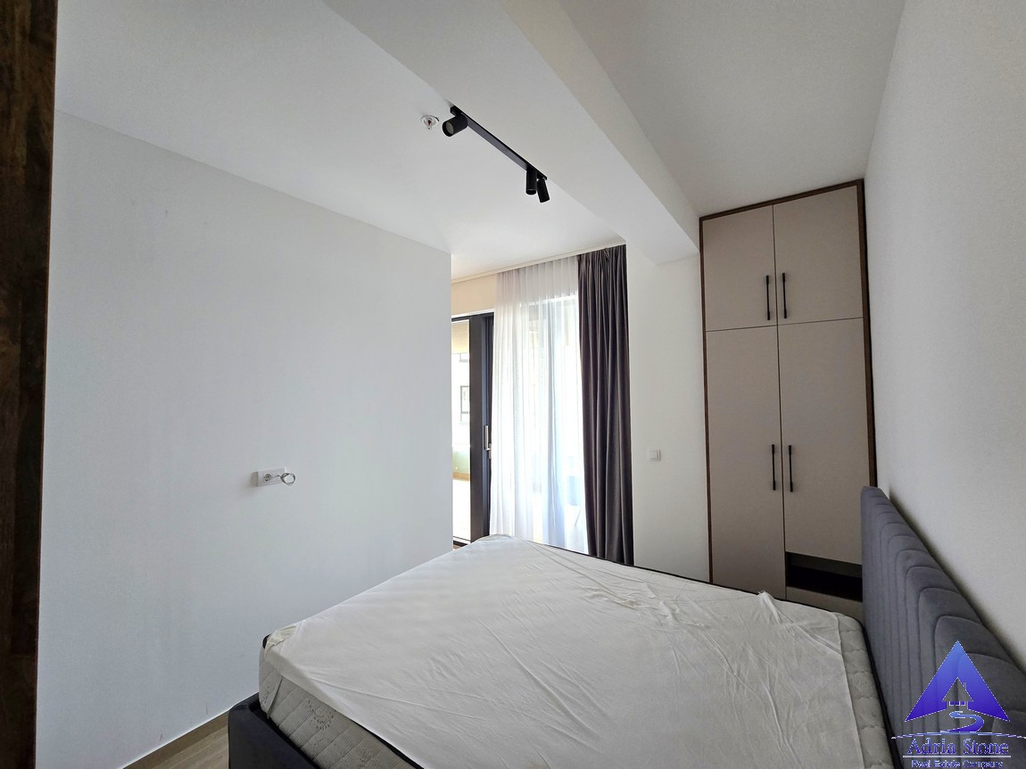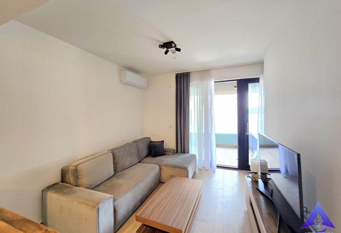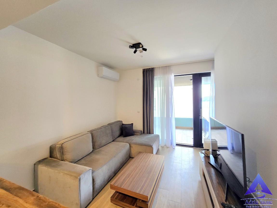 A furnished one-bedroom apartment for sale in Rafailovići, located on the first floor of a newer residential building, just steps from the beach.