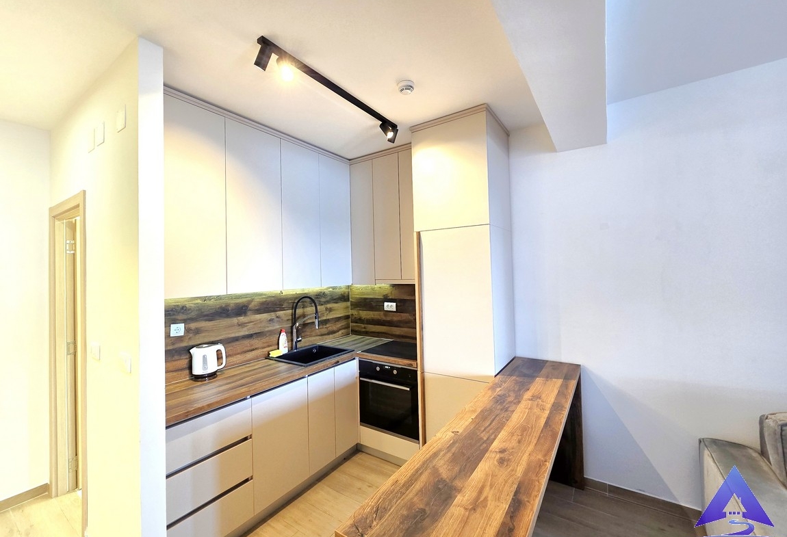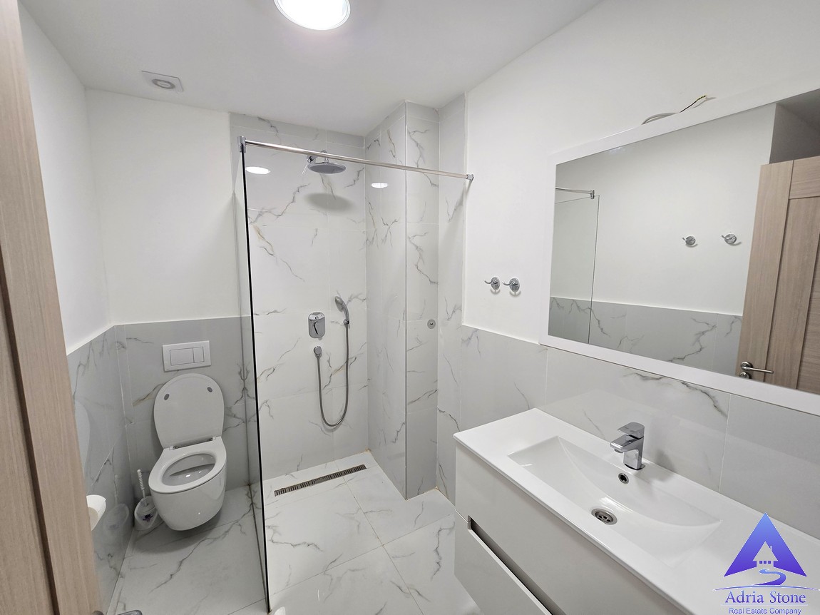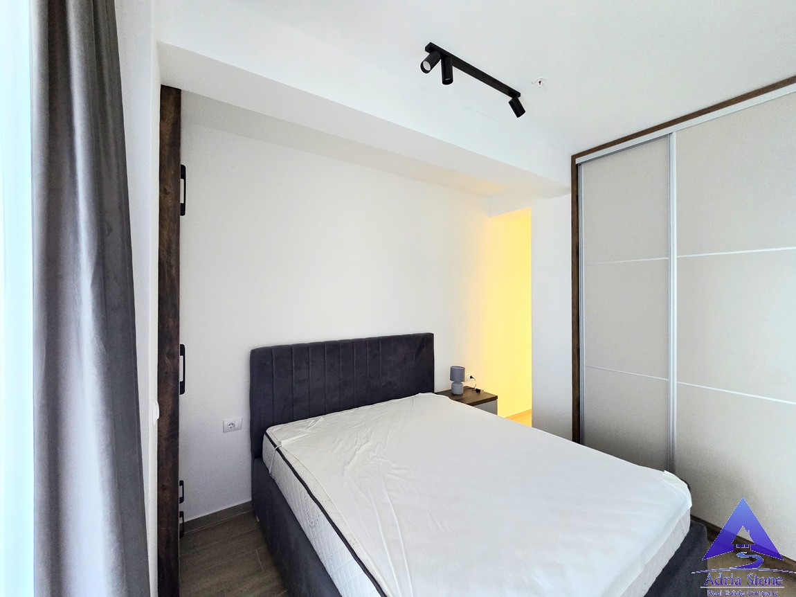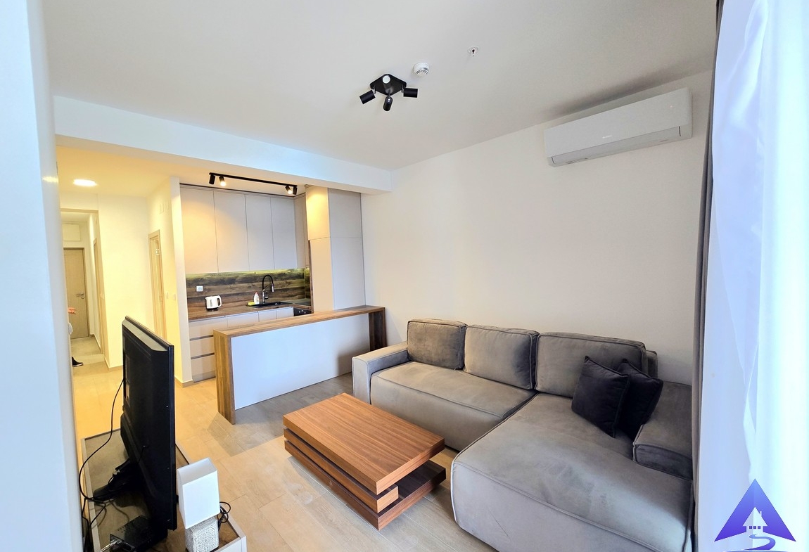 A furnished one-bedroom apartment for sale in Rafailovići, located on the first floor of a newer residential building, just steps from the beach.