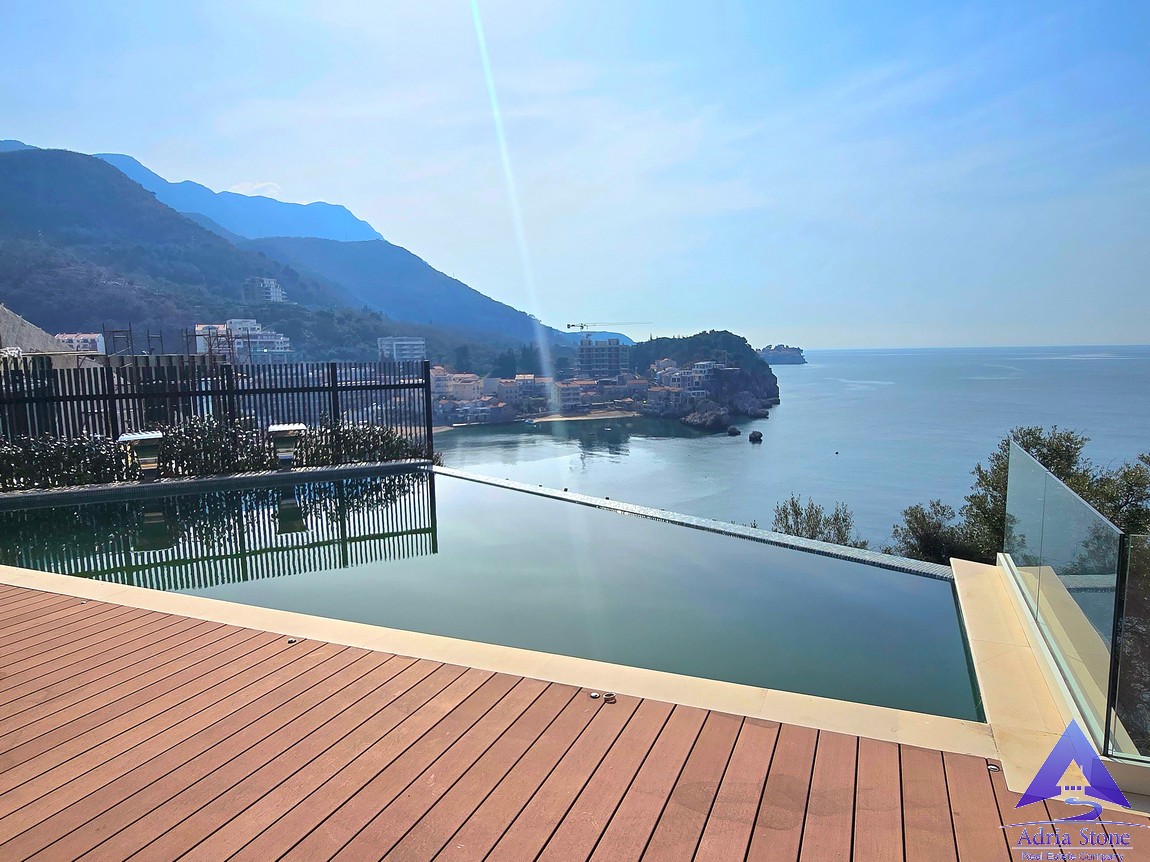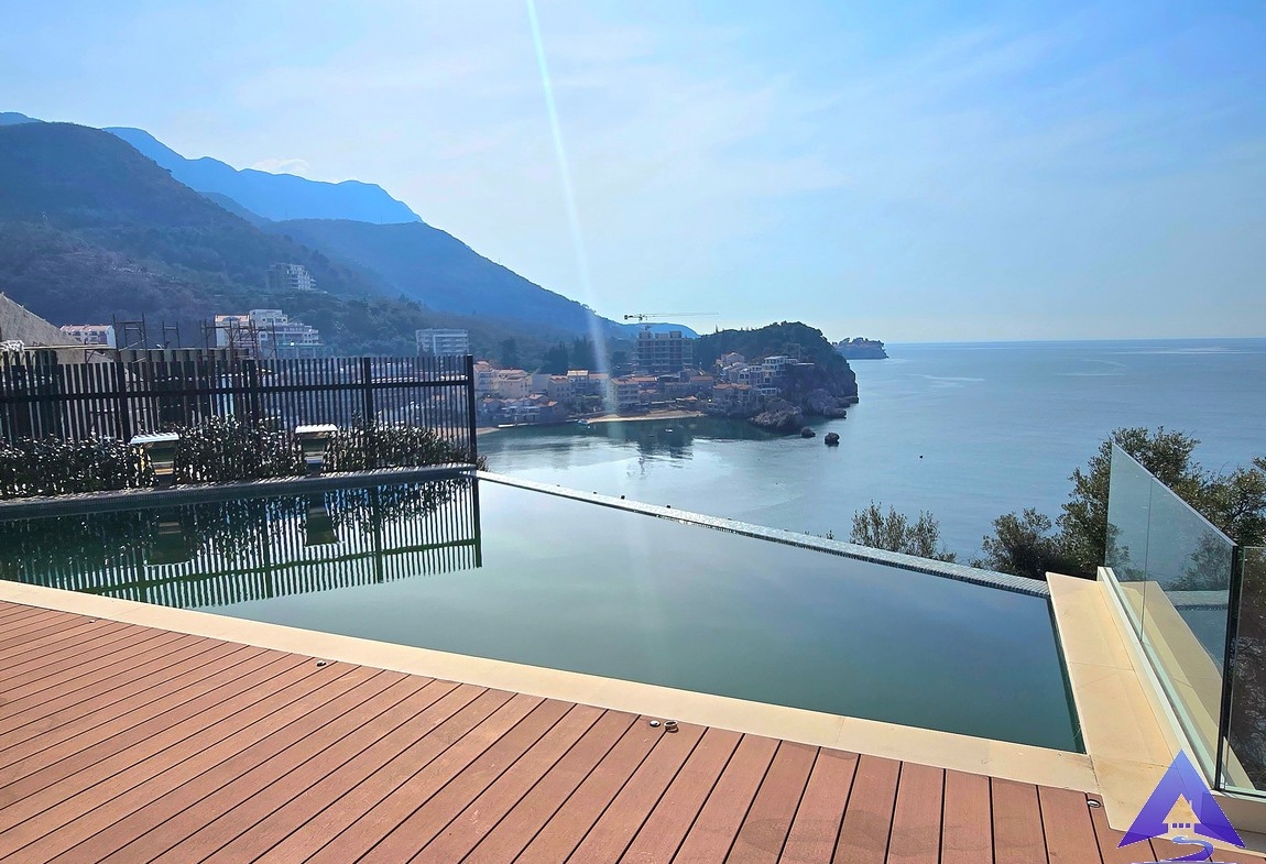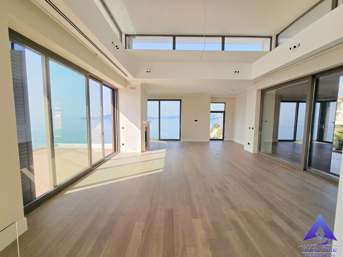 We present for sale a newly built luxury villa. The property is located in an exclusive location in Budva, next to the famous fishing village of Przno and the beautiful beach of Kamenovo. You will be delighted by the view and the sunlight that this house offers.