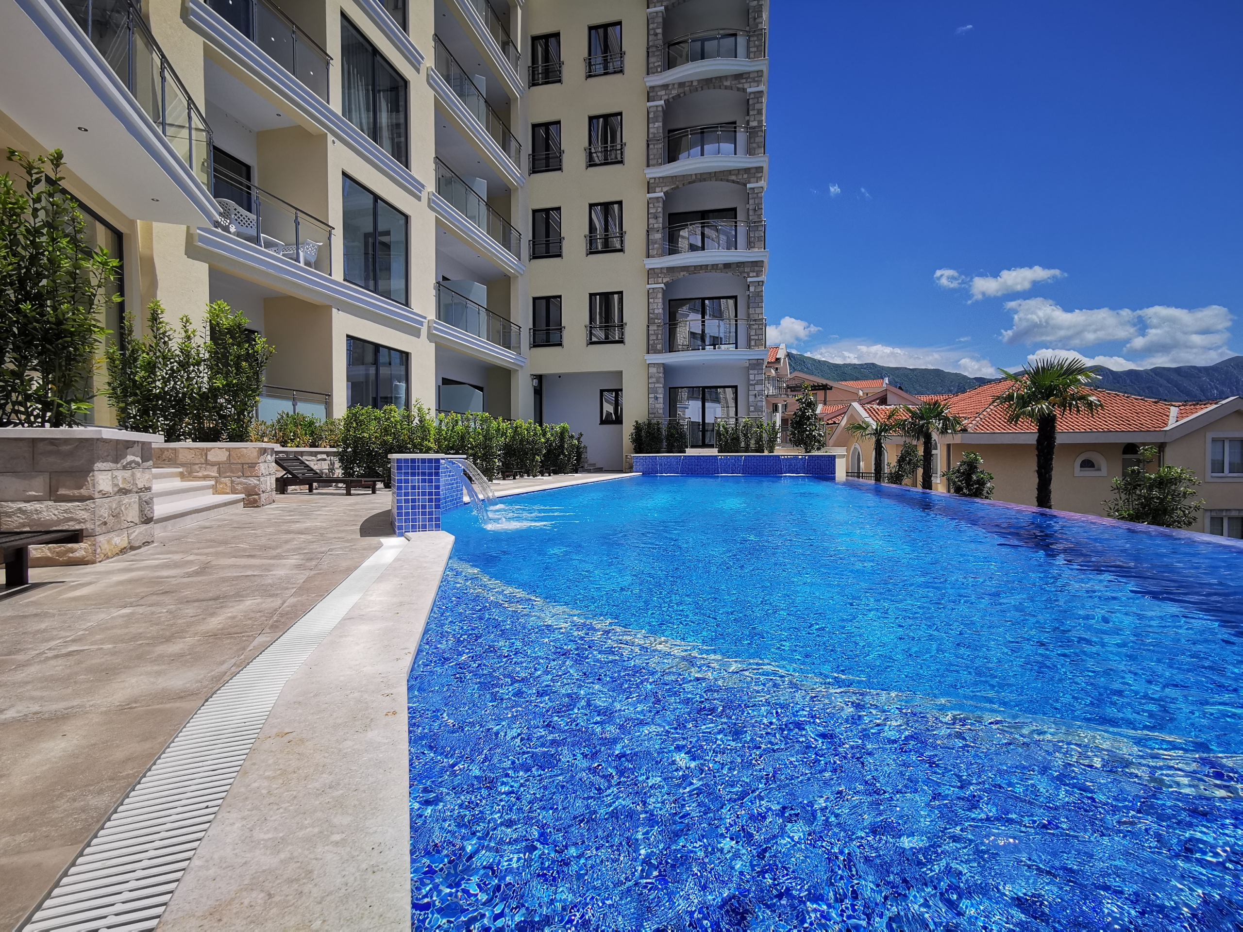 Excellent two bedroom apartment on a sixtt floor of a new modern building superbly located in the heart of Budva. Thanks to panoramic glazing in the living room the apartment is full of light.
