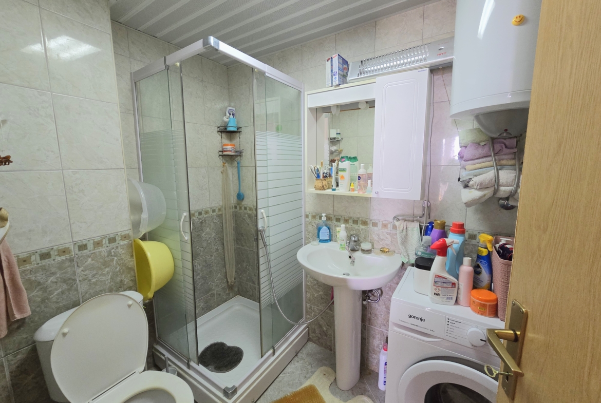 The layout includes a bright living area, a small kitchen, one bedroom, and two bathrooms, making it practical for everyday living. The highlight of the apartment is the large terrace with a beautiful view of the sea — an ideal spot for relaxing or entertaining.
