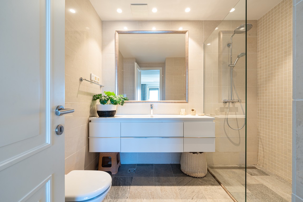 second bedroom and children’s bedroom sharing a modern bathroom,