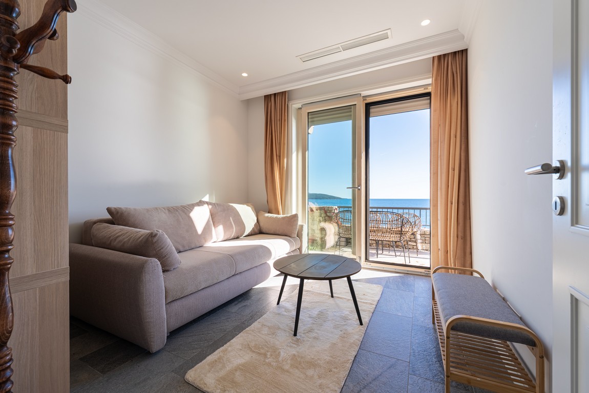 Located in one of the most prestigious addresses on the Montenegrin coast, this luxury three-bedroom apartment is set on the first line to the sea within the exclusive Luštica Bay complex. The property offers unobstructed views of the Adriatic Sea and the private beach area of the resort.
