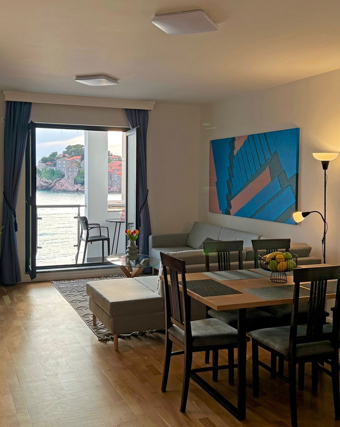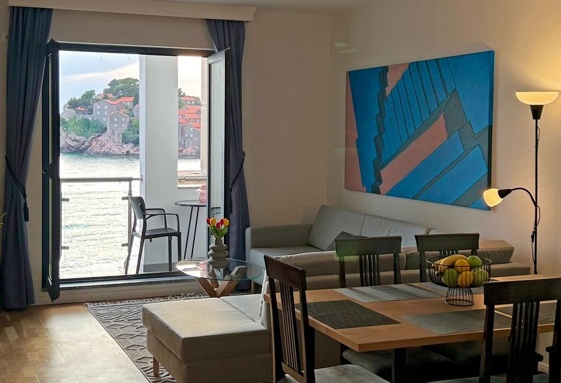 Two-Bedroom Seafront Apartment with Stunning Sveti Stefan View for Long-Term Rent