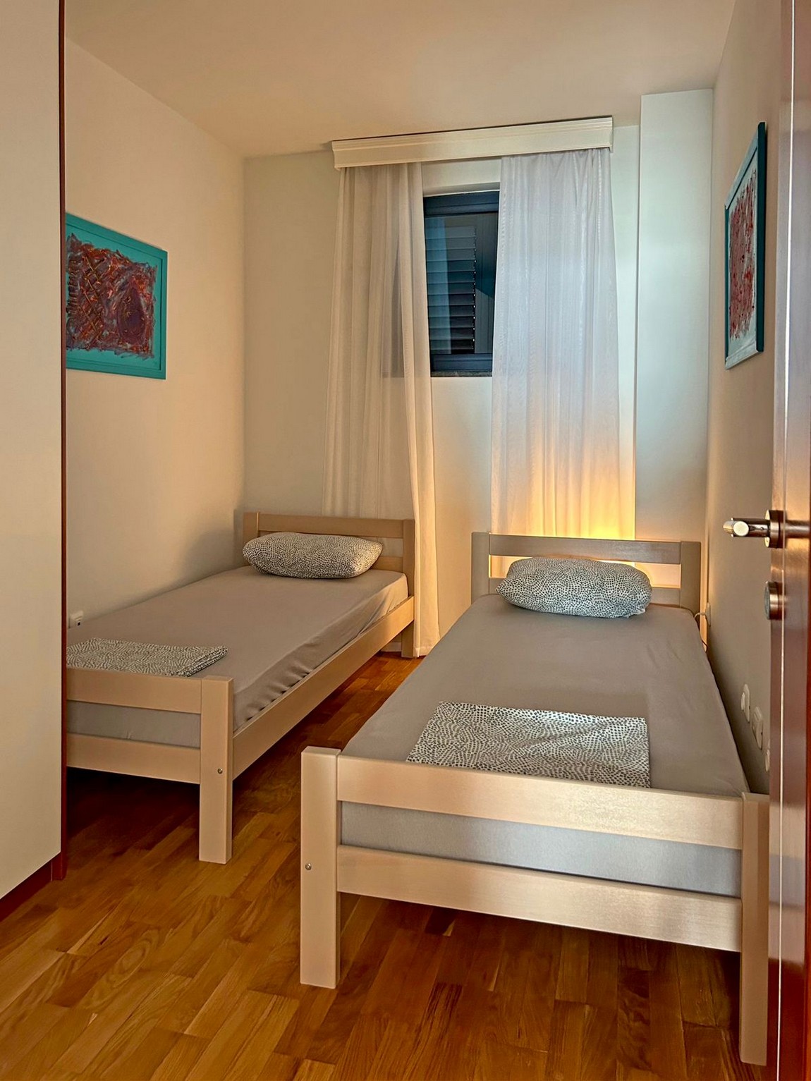 Both bedrooms are spacious and designed for privacy and comfort, with plenty of natural light. The apartment also includes a modern bathroom and a cozy terrace where you can enjoy morning coffee or evening sunsets overlooking the sea.