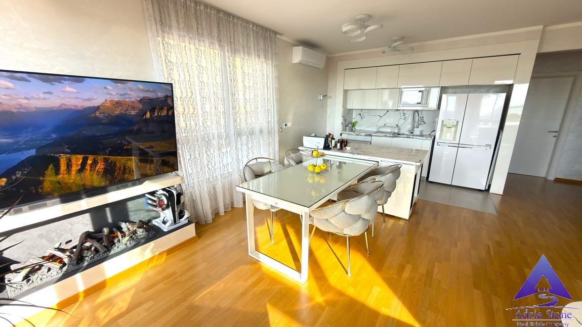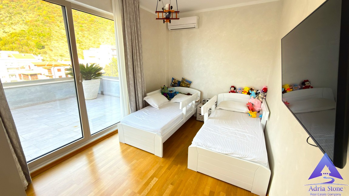 В современном жилом доме, построенном в 2020 году и заселённом в 2021 году, предлагается к продаже роскошный, полностью меблированный пентхаус, сочетающий высокий уровень комфорта, приватность и впечатляющие панорамные виды на море. Здание расположено в районе Бечичи — примерно в 350 метрах по прямой или около 500 метров пешком от знаменитого пляжа Бечичи.