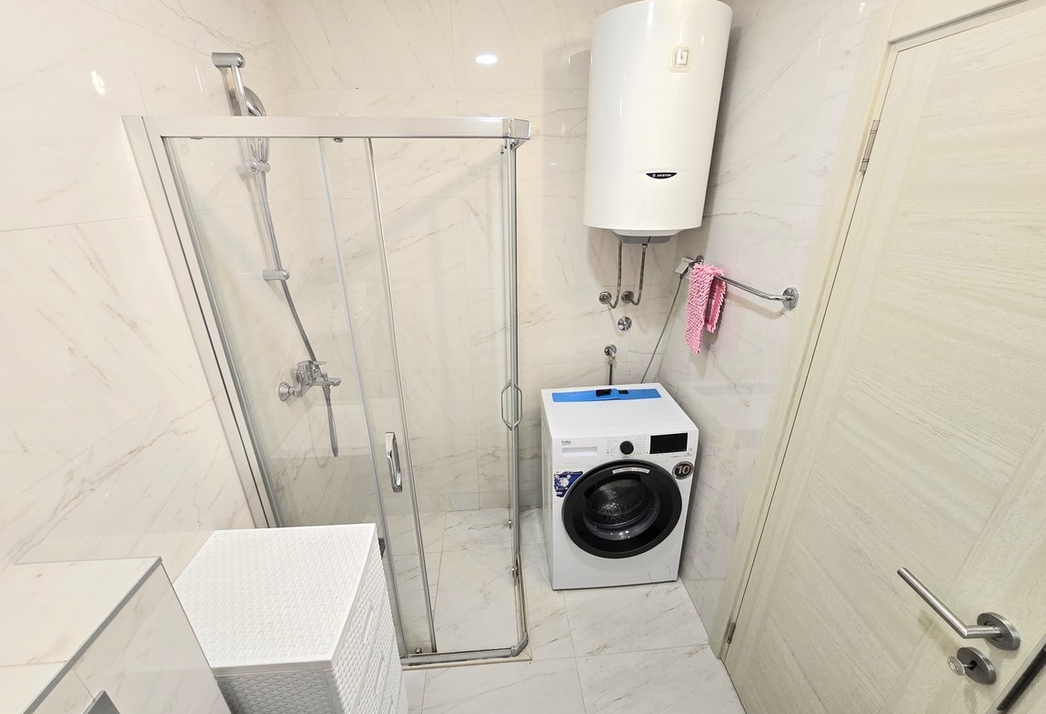 Площадь квартиры — 45 м². В планировку входят просторная гостиная с кухней и обеденной зоной, одна спальня, ванная комната и терраса. Идеальный вариант для тех, кто хочет жить недалеко от центра города, наслаждаясь при этом спокойной атмосферой и удобствами района.