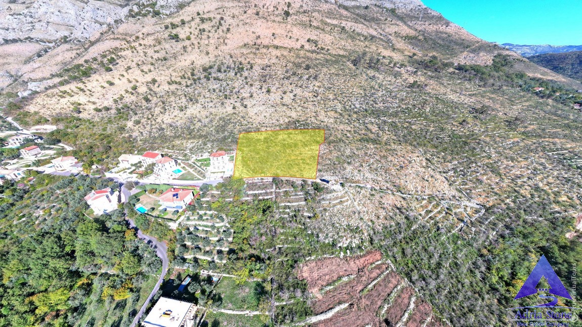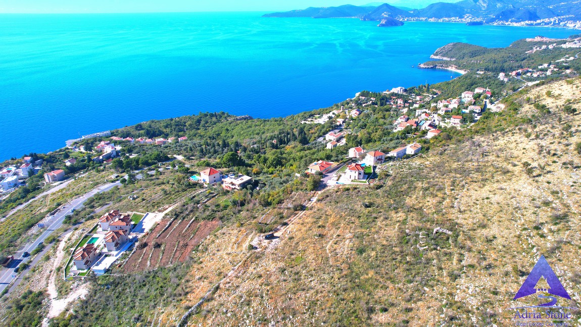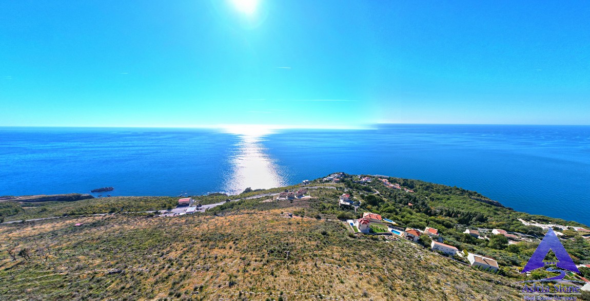 Просторный участок площадью 4660 м² предлагает фантастический панорамный вид на Адриатическое море и окружающие горы.
